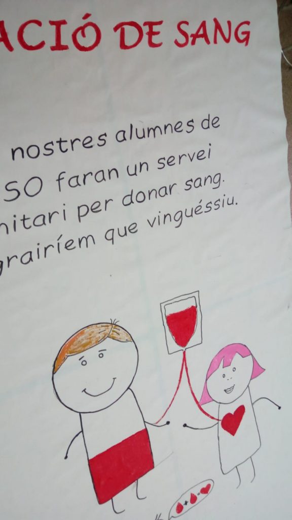 Els alumnes de 3r curs d’ESO van realitzar un punt de llibre que van regalar a les persones que van venir el passat dia 30 de gener al nostre centre a donar sang.