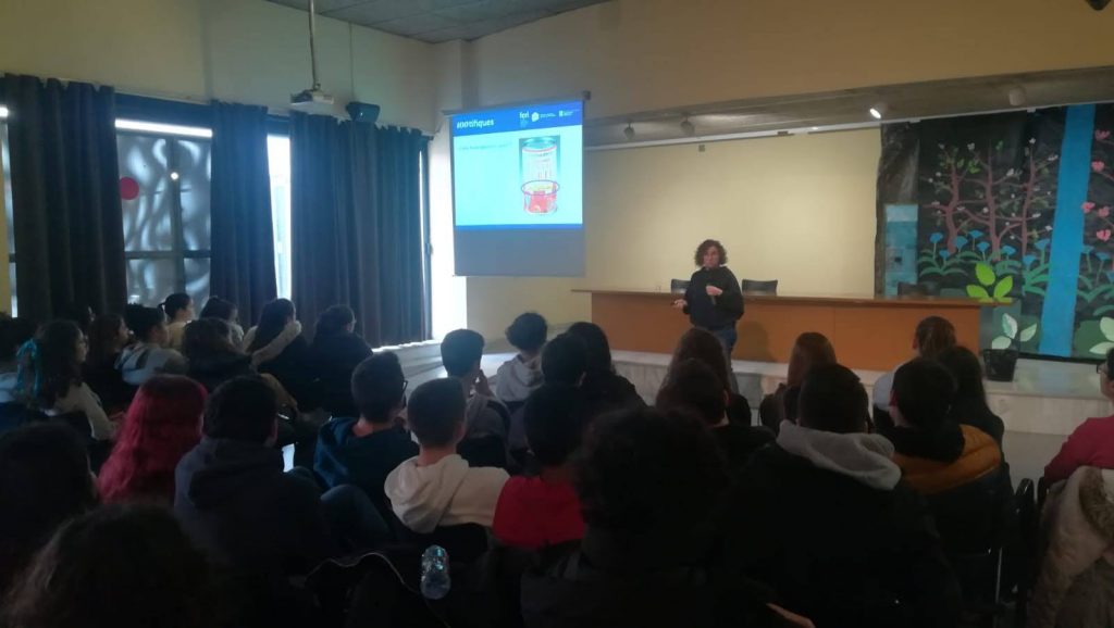 Avui, amb motiu del Dia Internacional de les Dones i les Nenes en la Ciència, els alumnes de 4t curs d’ESO han assistit a una xerrada sobre “Sostenibilitat genètica i agricultura per a un món sostenible” a càrrec de la Sra. M. José Aranzana, investigadora de l’IRTA al Centre de Recerca Agrigenòmica de Bellaterra (CRAG).