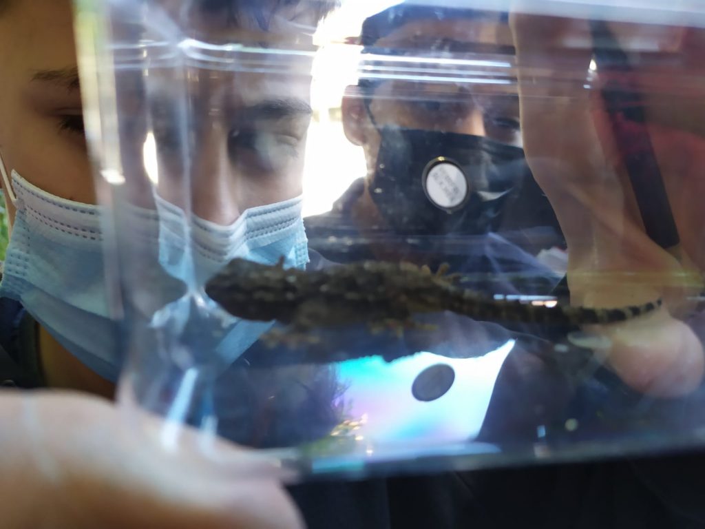 Dijous passat, els alumnes de primer d’ESO van convertir la classe de biologia en una sessió de captura de bestioles de jardí. I van tenir molta sort! Un drac de paret els va fer mitja classe! Després d’agrair-li la seva paciència i la seva immensa professionalitat, el van deixar anar tranquil.