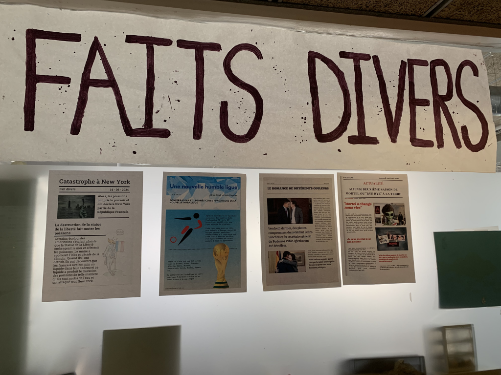 Els alumnes de francès de 4t d’ESO han estat estudiant les “faits divers” (notícies) i els verbs en passat i com a projecte final han escrit “fausses nouvelles” (notícies falses) que després han plasmat en un telenotícies audiovisual. Aquí teniu el producte final i també podeu veure les notícies escrites al passadís de 4t davant l’aula 22.