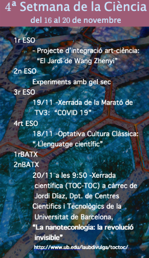Enguany celebrarem la 4a Setmana de la Ciència els dies 16 al 20 de novembre.