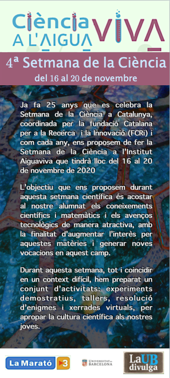 Us deixem aquí el tríptic amb totes les activitats programades per aquesta setmana. Esperem que gaudiu de la Ciència!