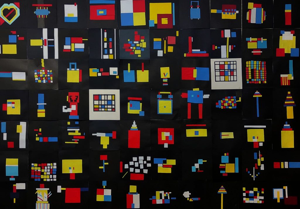 Us ensenyem les obres que han fet els alumnes de 3r d’ESO a l’assignatura d’educació visual i plàstica, i que consistia en passar del realisme a l’abstracció geomètrica de Piet Mondrian.