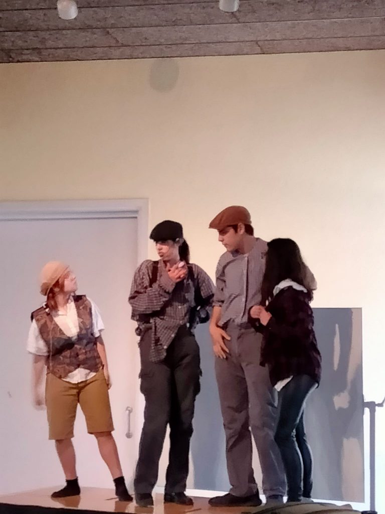 Els alumnes del grup de teatre del centre ens han fet avui una representació d’una petita part de l’obra musical Newsies que estan preparant i que es representarà els dies 16 i 17 de juny a Can Gomà.
