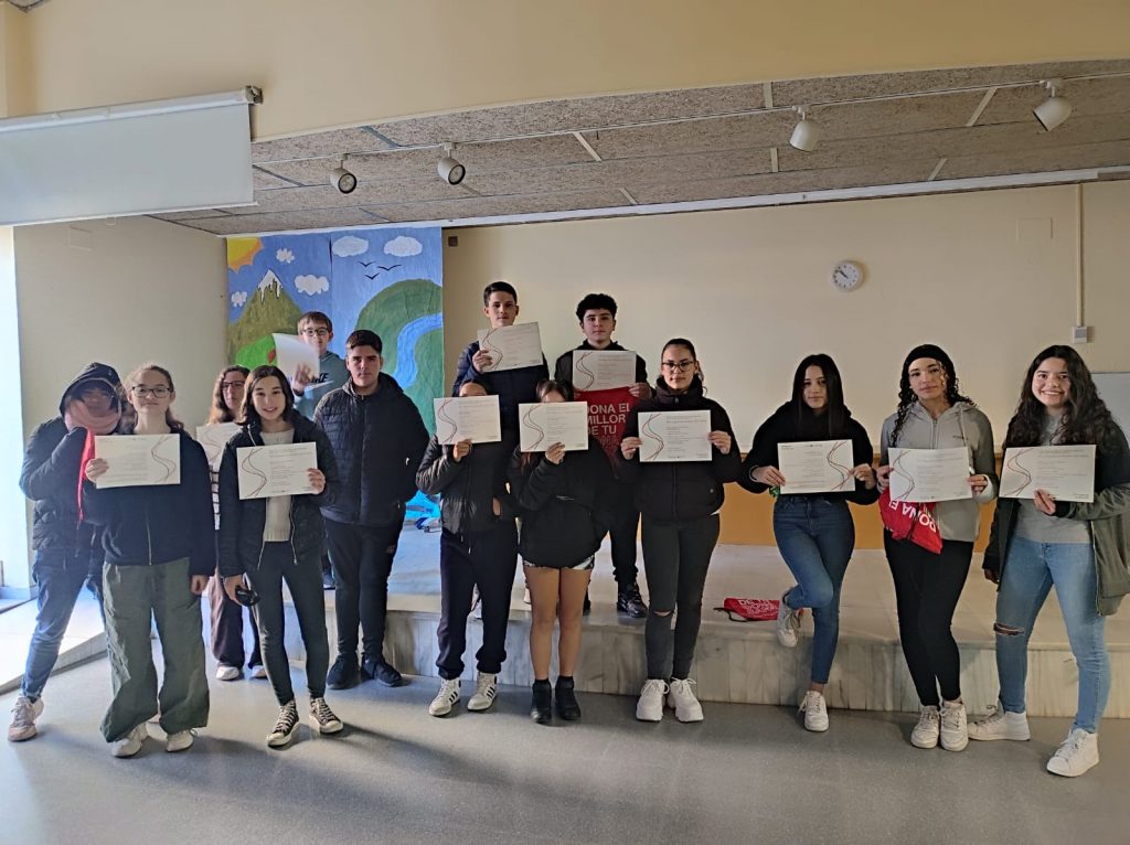 Els alumnes de tercer d’ESO que realitzen el Servei Comunitari Banc de Sang han rebut un diploma en agraiment per la seva col.laboració en la recaptació de sang que es va fer al Mercat Vell el passat divendres 1 de desembre.