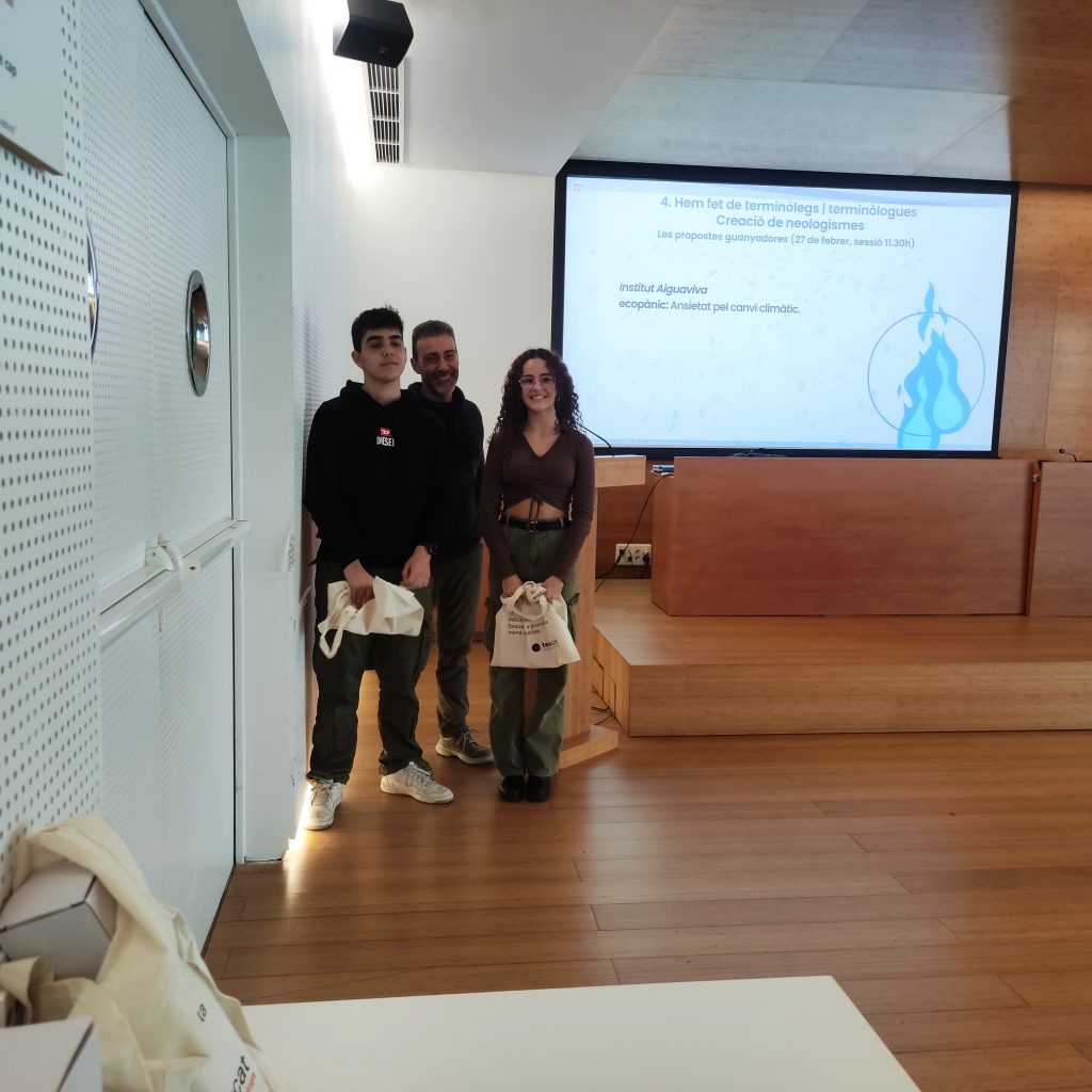 Durant aquest acte s’ha concedit un premi al millor neologisme del nostre centre, que ha estat creat per la Laia Martínez i el Marc Lorente, de 4t B. El neologisme guanyador ha estat ecopànic.