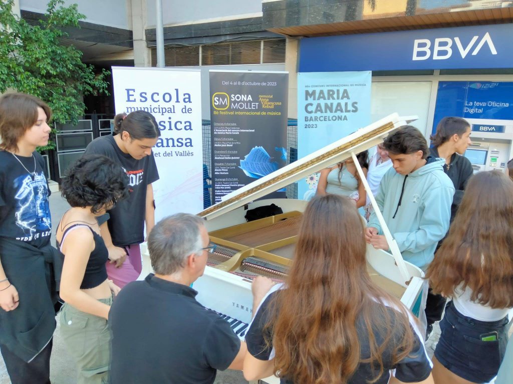 Els alumnes de 4t d’ESO que cursen l’optativa de música han gaudit de la música al carrer amb el piano que s’ha situat a la plaça Catalunya de Mollet amb motiu de la 8a. edició del Festival Internacional de Música SONA MOLLET.