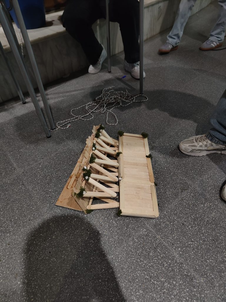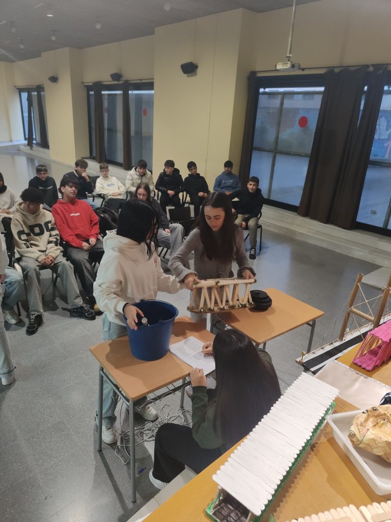 Després de l’entrega cada grup realitza un assaig de càrrega i els alumnes posaran a prova els seus projectes per veure si són capaços d’aguantar, com a mínim, 5 kg i, com a màxim, 100 kg. Quines estructures aguantaran?