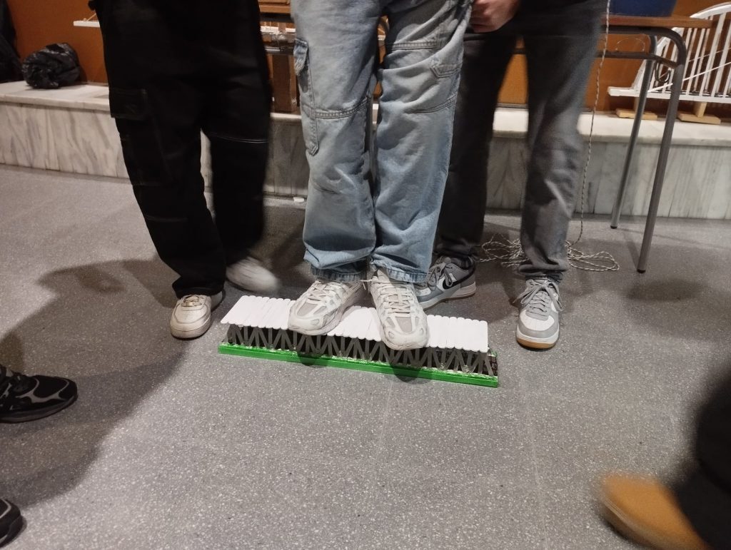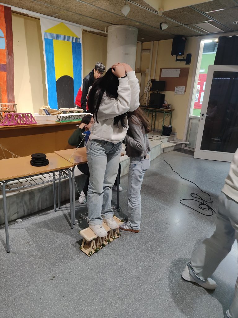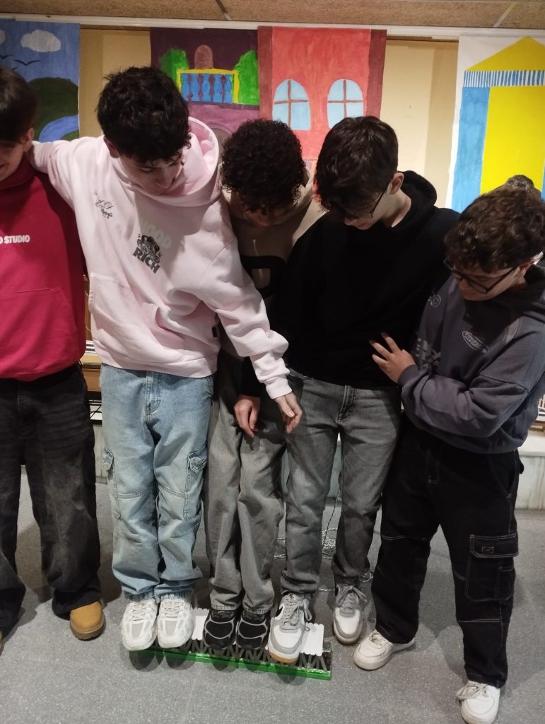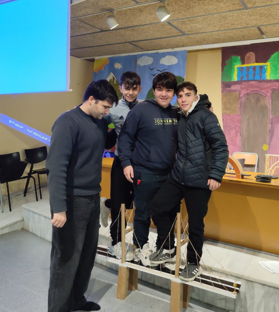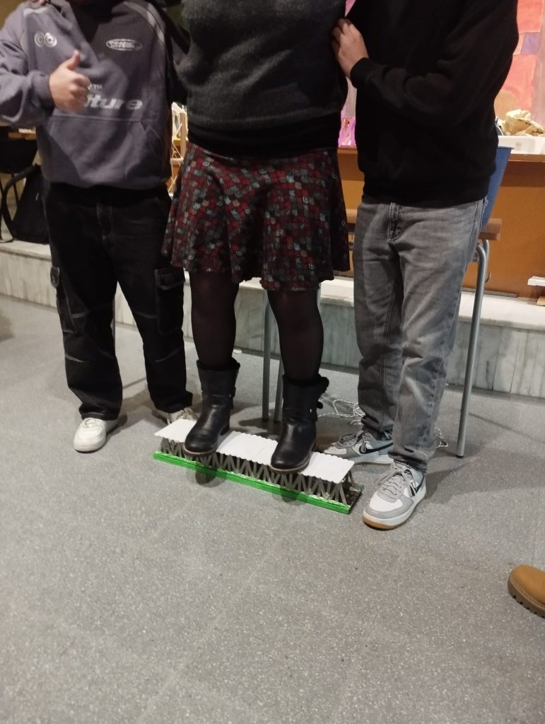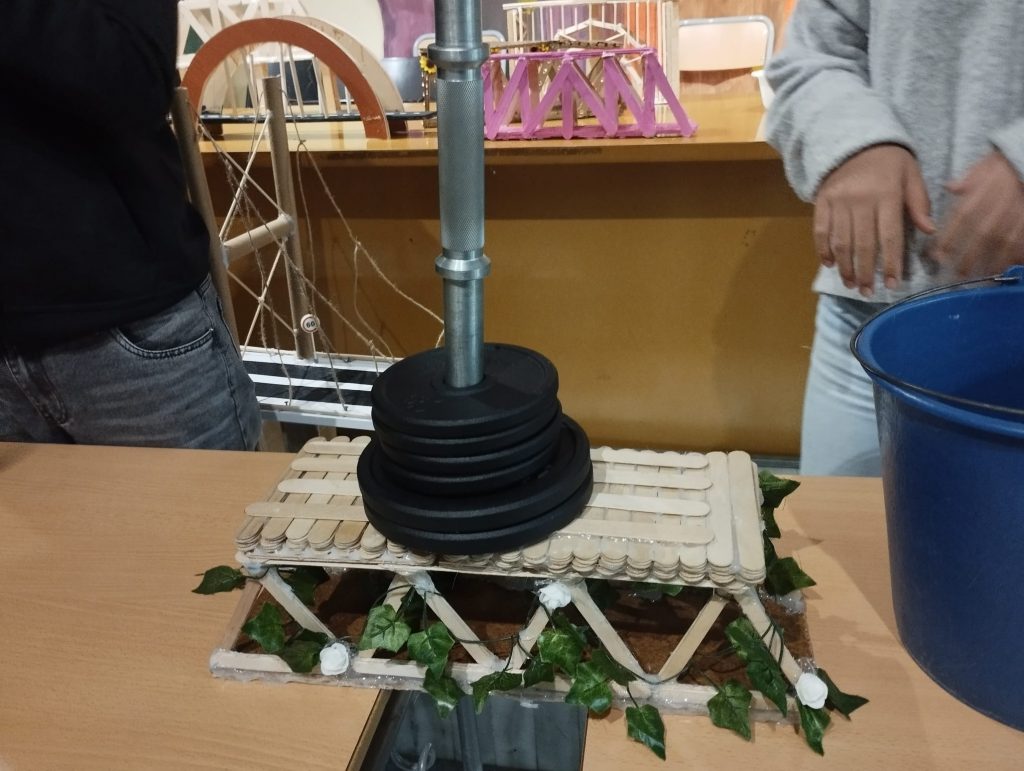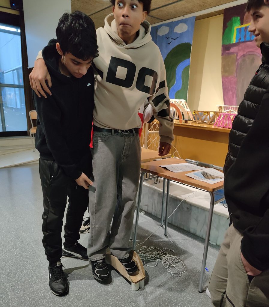 Després de suportar un pes mínim de 10 kg, els alumnes han continuat fent proves amb més pes i els ponts han aguantat amb el pes de diferents alumnes a sobre. També s’han fet assajos amb el pes del docent de tecnologia, l’Àlvaro. Fins i tot la directora s’ha atrevit a pujar-se’n!