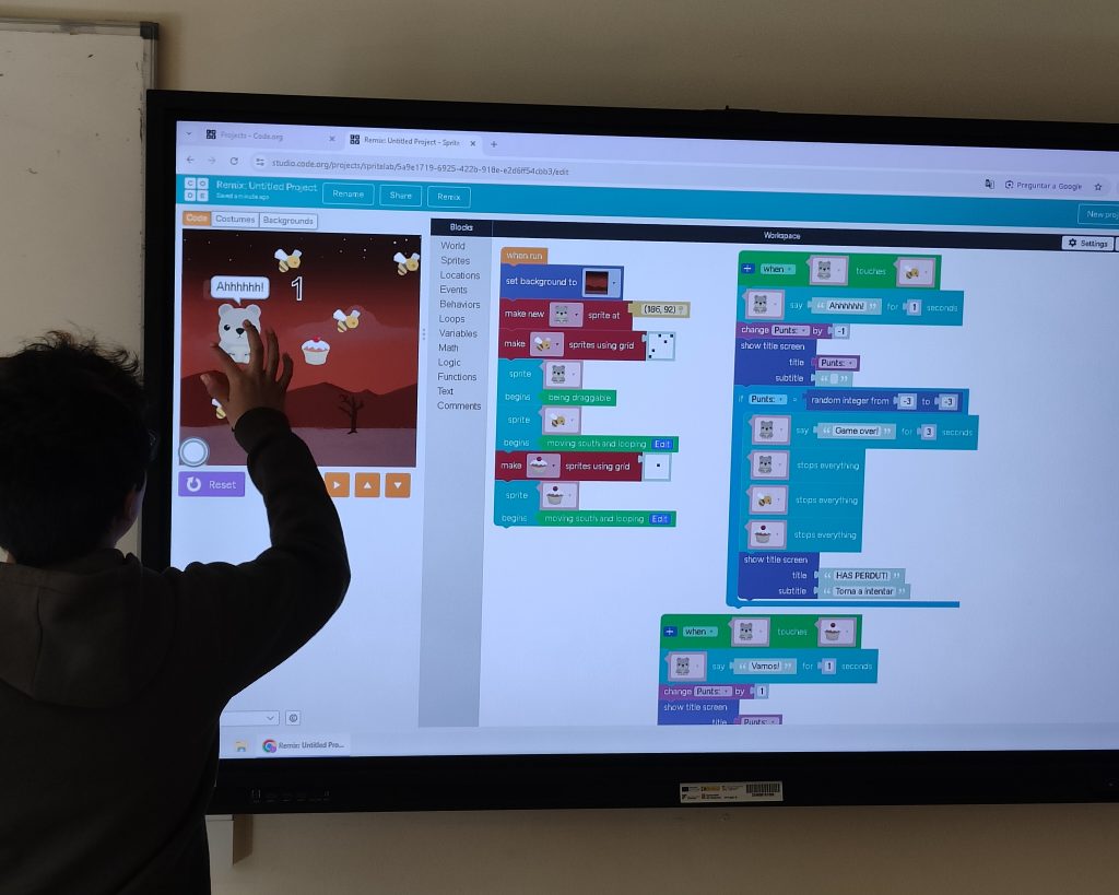 Mitjançant la programació per blocs han integrat conceptes de lògica, jugabilitat i disseny, transformant una idea en un projecte interactiu en temps rècord.