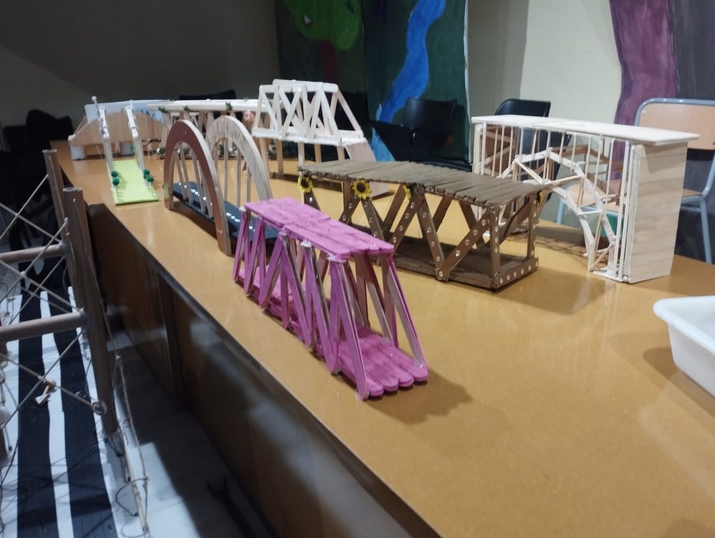 A 3r d’ESO  els alumnes han realitzat un projecte d’estructures. En primer lloc, es van treballar uns conceptes teòrics i uns plànols de dibuix tècnic a l’aula, ha acabat prenent forma al taller de tecnologia. Utilitzant fusta i materials reciclats, l’alumnat ha hagut de resoldre problemes reals d’arquitectura i d’estabilitat. La millor manera d’aprendre és realitzant i treballant el material al taller!