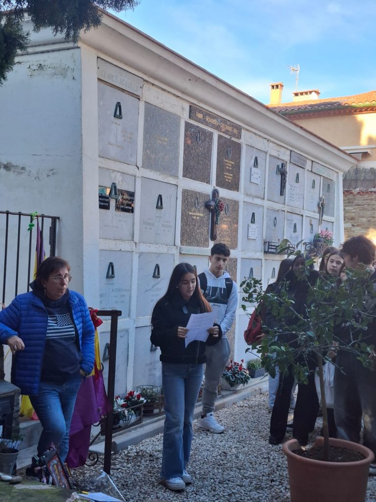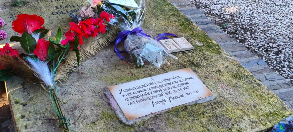 Tot seguit, van fer parada a Cotlliure, on varen visitar la tomba del poeta Antonio Machado, a qui varen retre homenatge amb una ofrena floral i la lectura, per part de l’alumnat, d’alguns dels seus poemes.