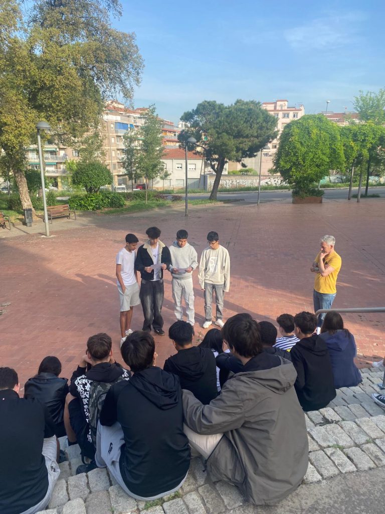 Al llarg del trajecte, hem fet parada en diversos carrers dedicats a autors com Antonio Machado, Miguel de Cervantes, Ramon Llull, Joan Maragall o José Zorrilla o la plaça dedicada a Mercè Rodoreda. A cada punt, l’alumnat ha llegit en veu alta una breu biografia i un fragment representatiu de cada autor/a.