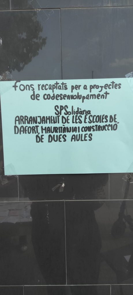 L’alumnat de 3r d’ESO (dins del projecte “Un granet de sorra”) està recaptant fons que aniran íntegrament al projecte de codesenvolupament de la ONGD catalana SPSolidària, que té com a objectiu l’arranjament de les escoles de Dafort, Mauritània, i construcció d’una nova nau per a dues classes.